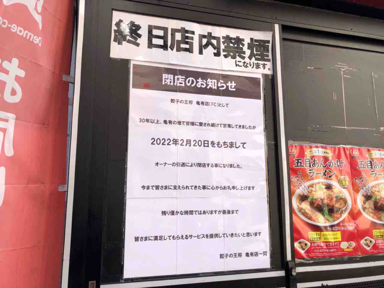 『餃子の王将 亀有店』が閉店!?
