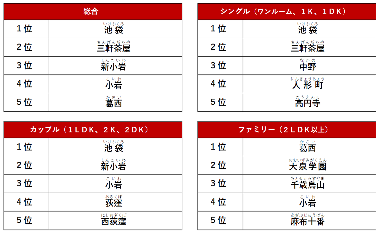総合3位に新小岩がランクイン!!