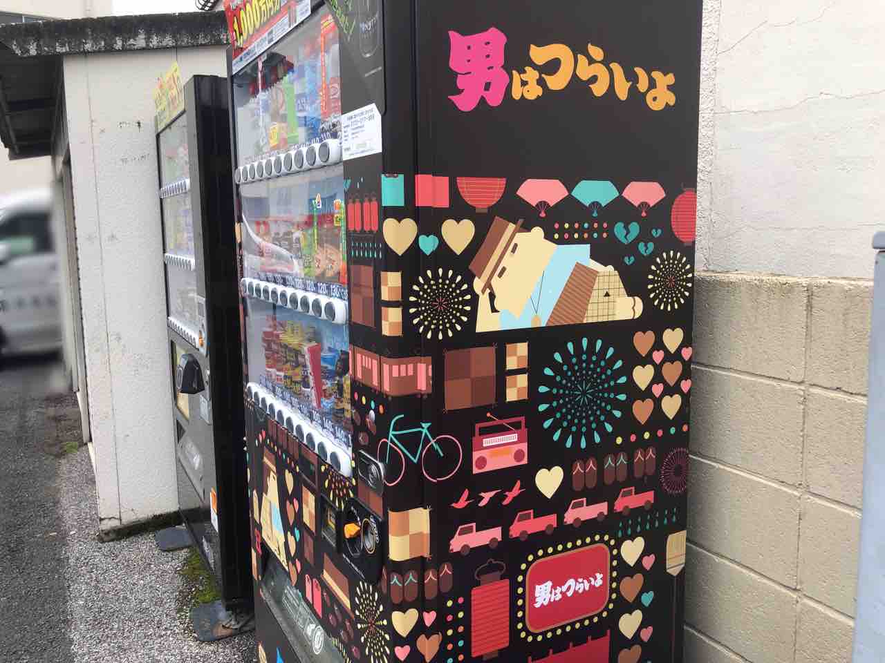自販機に寅さんのモダンな柄が描かれてて